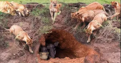 獅子攻擊疣豬 - 獅子會住在疣豬洞穴和苦澀的結局嗎