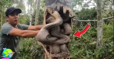 Terdengar Suara Aneh Dalam Pohon!! Saat Ditebas Ternyata Banyak Sekali Ular Kobra Didalamnya...