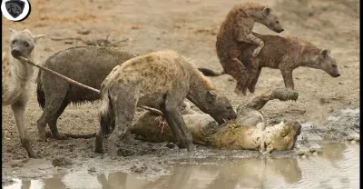 鬣狗如此殘忍地攻擊困在沼澤中的獅子