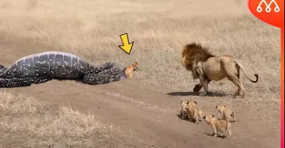 QUANDO O LEÃO ENCONTRA A COBRA COM SEU FILHOTE