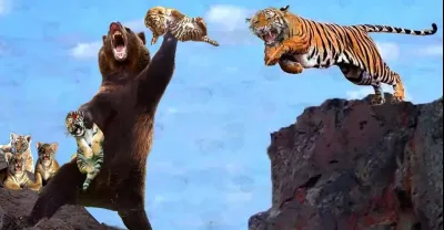 Terrible! Angry Tiger Mother Screams Fighting Crazy With Bears To Protect The Newly Born Tigers