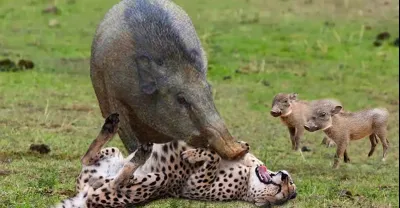 African Wildlife In Action! Mother Warthog Tossing Cheetah To The Air To Save Baby - Lion vs Buffalo