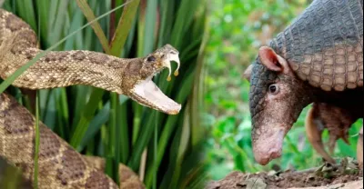 Вот что будет если гремучая змея нападет на броненосца!