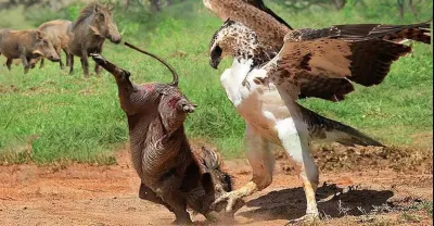超級速度!巨鷹突然衝下來打敗疣豬媽媽,分分鐘偷走她的寶寶