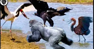 老鷹利用它們的大翅膀擊敗猴子和蒼鷺 - 野生動物攻擊