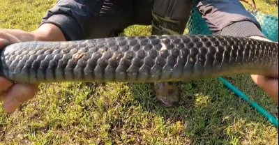 我的天啊 !勇敢的人在放牧水牛時抓住了兩條巨大的眼鏡王蛇