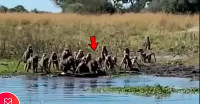 INCRÍVEL BABUÍNOS SALVAM AMIGO DE CROCODILO
