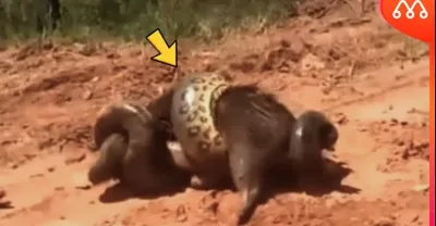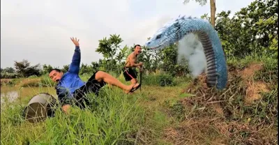 2 個勇敢的人與一條 600 公斤的巨型噴火蟒戰鬥,攻擊人。
