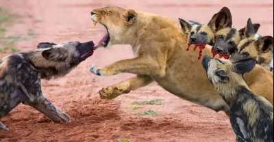 獅子不得不犧牲自己作為石碑讓野狗折磨以保護獅子寶寶