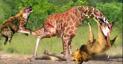 母性本能!長頸鹿媽媽為了拯救她的小牛,打敗並摧毀了獅子和鬣狗