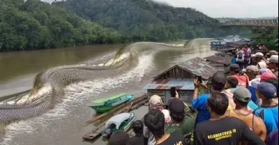 BERUSIA 100 TAHUN! Kemunculan Ular NABAU Sepanjang 80M Gegerkan Warga Kalimantan!