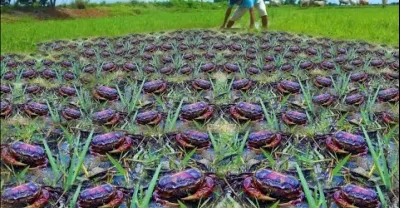 Wow!best catching fishing amazing a handsome fisherman so lucky day catching crab alot of at field