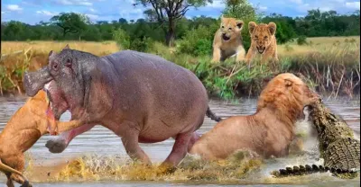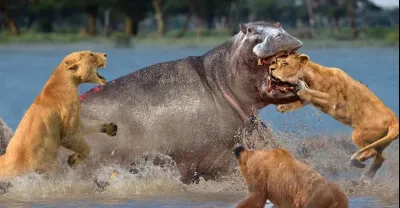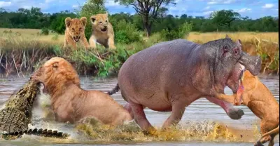 Battle In The Mud! Aggressive Lion Was Bitten Head Off By Angry Hippo While Risking His Life To Hunt