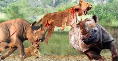 Painful Lion Dies Silently When Stabbed With His Belly By Rhino #lion #rhino #animals #wildanimals