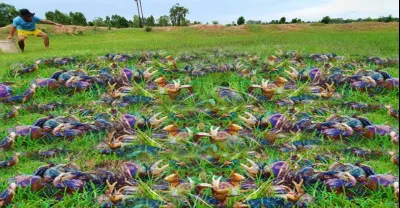 哇!!令人驚嘆的英俊漁夫在鄉下抓了很多蟹鴨蛋
