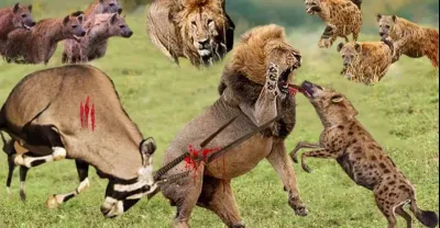 鬣狗和羚羊聯手攻擊邪惡的獅子