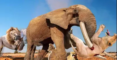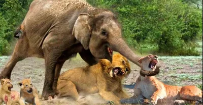 可怕!痛苦的獅子努力逃離憤怒大象的巨爪和悲慘的結局