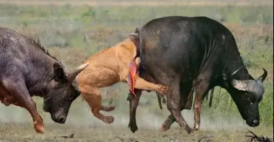 難以置信......獅子在面對水牛群的領袖時悲慘