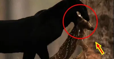 罕見墨豹現身!如同「幽靈」,瞬間跳出一口咬斷小鹿的脖子,叼著小鹿爬到樹上才進食!