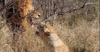 極好的!憤怒的長頸鹿發動強大的踢擊擊敗獅子以壯觀地逃脫