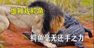 雄獅戰鱷魚,鱷魚竟毫無還手之力,最後倉皇逃竄