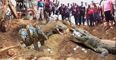 極好的!蜥蜴決心保護雞蛋免受鱷魚和蟒蛇的殘酷狩獵