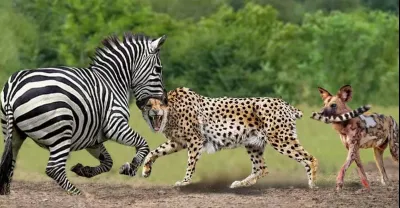 我的天啊!咀嚼獵豹的頭,斑馬媽媽拿下獵豹來救她的孩子——斑馬大戰野狗