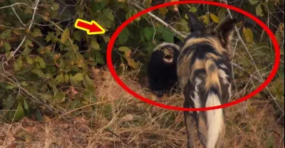 蜜獾對野狗幼崽圖謀不軌,千鈞一發之際,母野狗硬抗蜜獾強勢護崽!