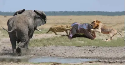 大象媽媽大戰獅子拯救她的小象