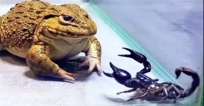 驚人!!亞洲牛蛙配大黑蠍子!警告實時喂食