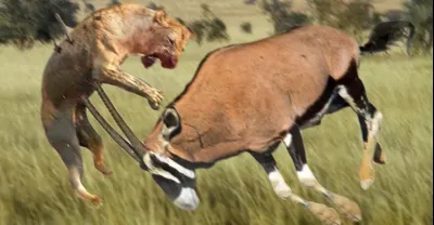 Oryx attacks Lion very hard to save her life, Wild Animals Attack