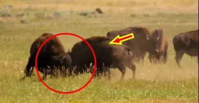 激戰!美洲野牛的生死之戰,牛王打敗所有的挑戰者,下一秒意想不到的事情發生了!