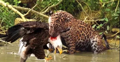 老鷹Vs豹,老鷹為救幼崽面對兇惡的豹時,不幸地死去了!