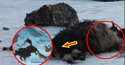 激戰!雪豹一口咬死200斤小氂牛!狼群撿食引來氂牛群圍攻,被氂牛活活踩死!