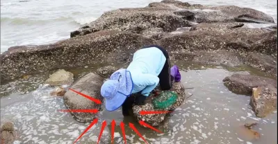 趕海路過大水坑發現不對勁,皮皮膽大伸手一摸,竟抓出條深海猛貨