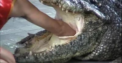 泰國男子為了掙錢,冒著風險把手伸進鱷魚嘴裡!下一秒讓人驚心動魄