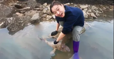 海邊這種渾坑別放過,皮皮下去就戳中大鯊魚,1斤能賣100多樂壞了