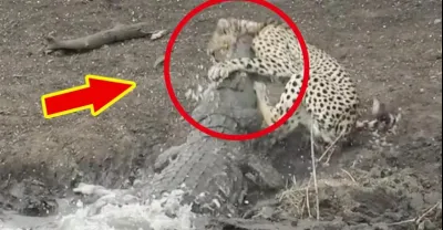 秒殺!獵豹在岸邊喝水,瞬間被一躍而起的鱷魚一口帶走,10秒終結!