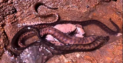 皮皮半夜碰上「鰻龍窩」,一堆密密麻麻,團團圍住大螃蟹真嚇人