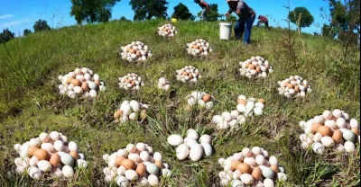 wow wow! pick a lots of duck eggs in field under grass by hand a fisherman / it's top fishing