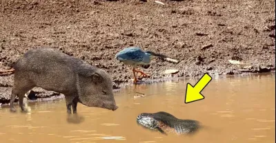 蛇遇到野豬,看看發生了什麼