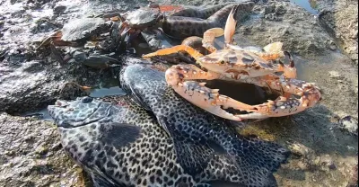 「魚」多到拿不動,大浪把魚群沖上岸