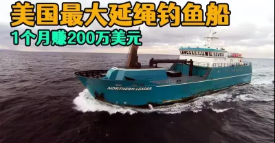美國最大最先進的延繩釣魚船,拖著80公里的釣線掛著75000根魚鉤,漁民人均月入15000美元