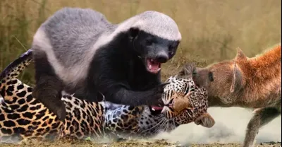 驚喜!蜜獾不斷沖向豹快速出擊救隊友,平頭哥大戰眼鏡蛇!