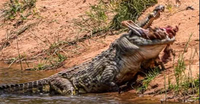 克魯格國家公園,薩比河:怪物尼羅河鱷魚黑斑羚狩獵,全場景
