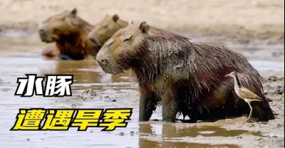 水豚遭遇旱季,河水乾涸,它們徒步尋找水源,泥地成為續命之所