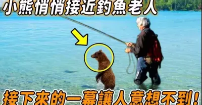 老人正在河邊釣魚,一隻小熊悄悄靠近男人,接下來的一幕讓所有人意想不到...