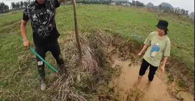 驚人的釣魚!拖拉機犁耕後,漁夫技能捕捉田間螃蟹