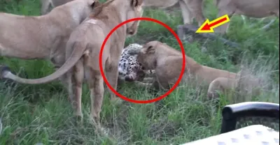 驚險!1隻花豹捅了獅子窩,被12隻獅子瘋狂撕扯,插翅也難逃!
