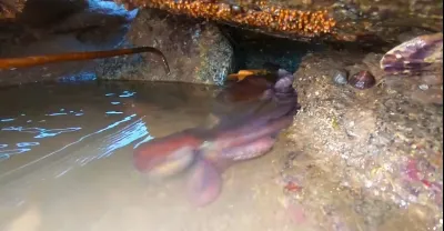趕海發現「聚寶洞」,幾隻大海物在洞內分食海魚,把皮皮激動壞了